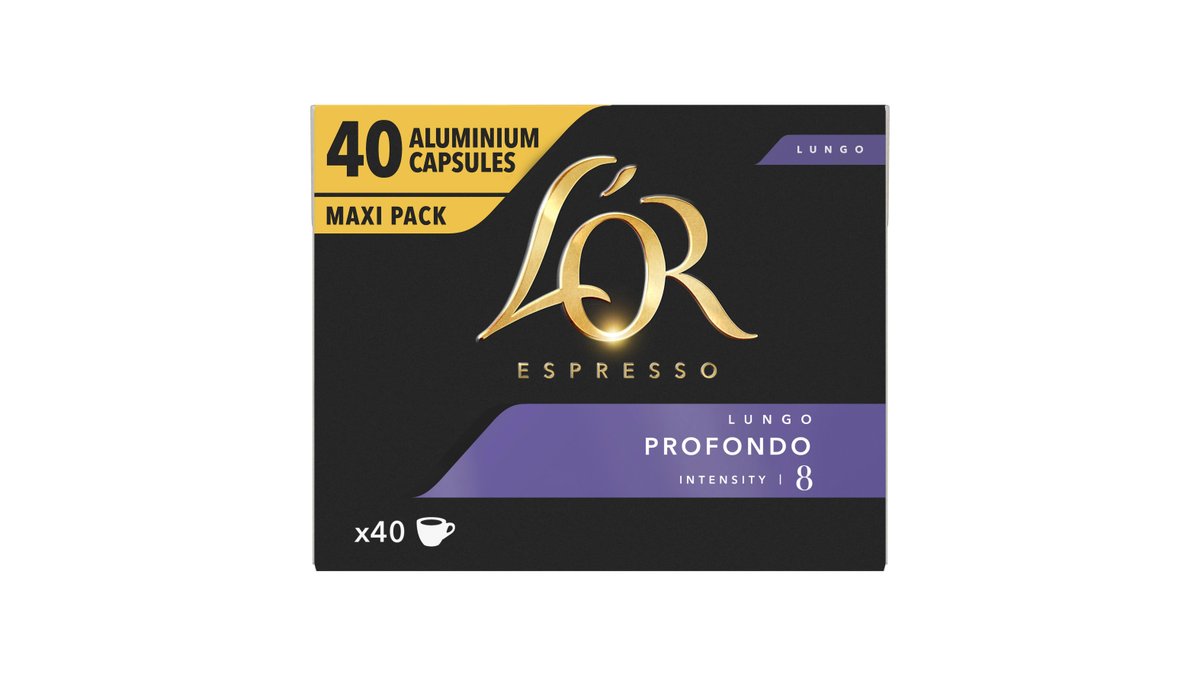Cafea capsule L'OR Espresso Lungo Profondo, 40 bauturi x 110 ml, compatibile cu sistemul Nespresso Original®*, 208 g