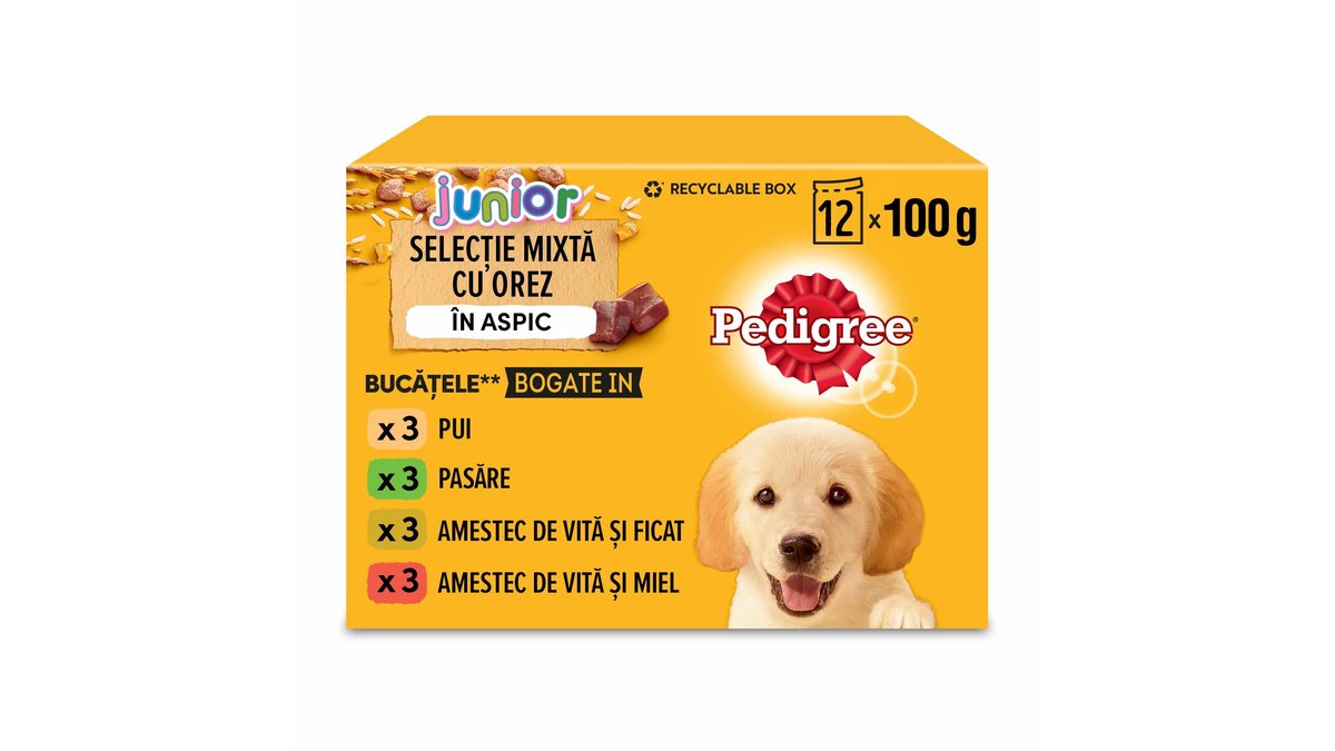 Pedigree Junior Hrana umeda completa pentru catei cu orez in aspic 12 x 100 g (1,2 kg)