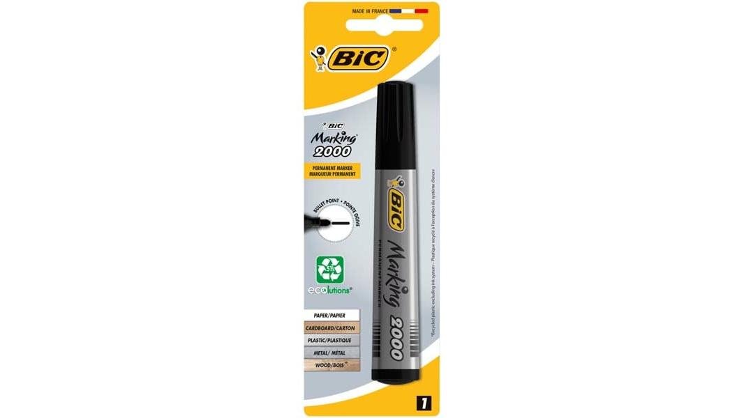 Set 2 markere permanente BIC Marking 2000 ECOlutions, varf rotund mediu, Negru