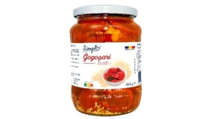 Ardei gogoşari, taiati sferturi, in otet 680g Simpl
