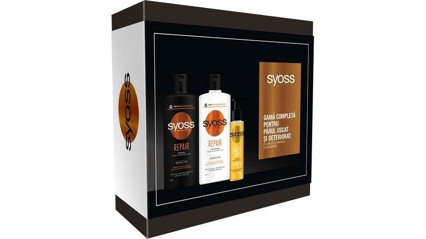 Set Syoss Repair pentru parul uscat si deteriorat: Sampon, 440 ML + Balsam, 440 ML + Ulei de par Beauty Oil Elxir, 100 ML