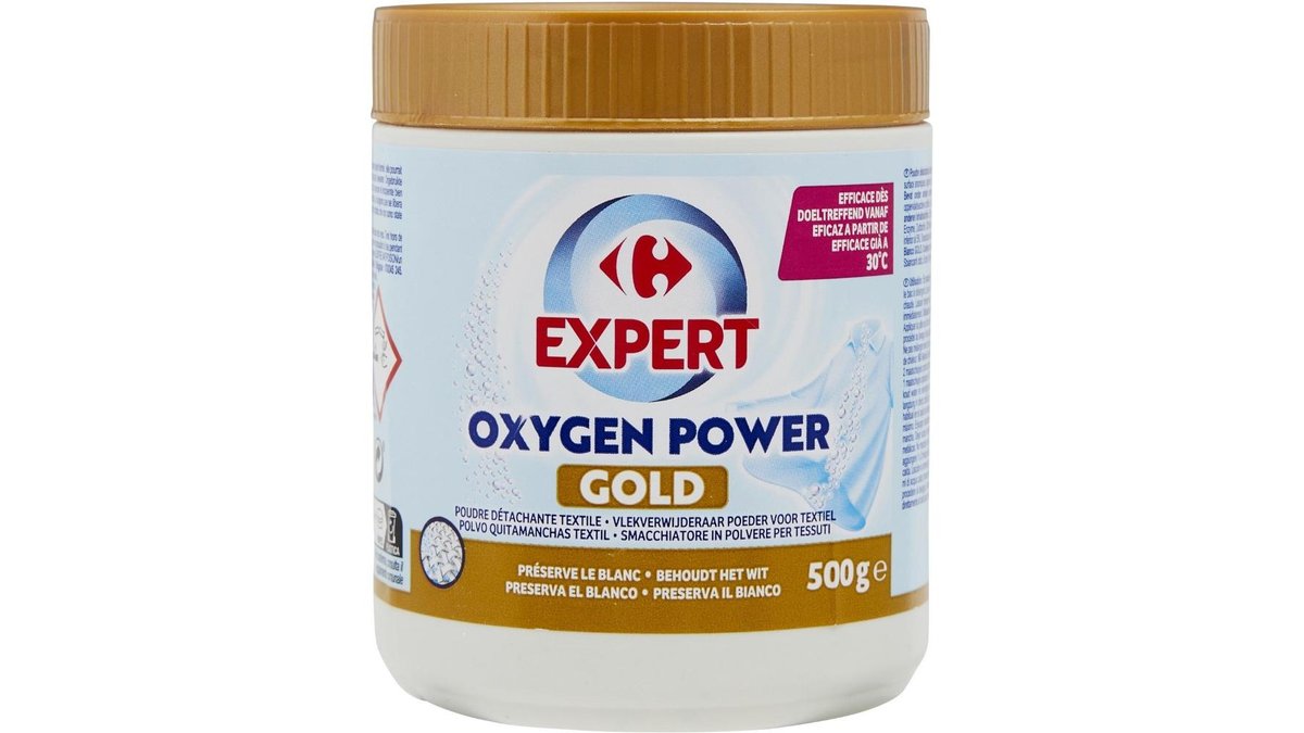 Pudra pentru indepartarea petelor Carrefour Expert Oxygen Power Gold, rufe albe, 500 g