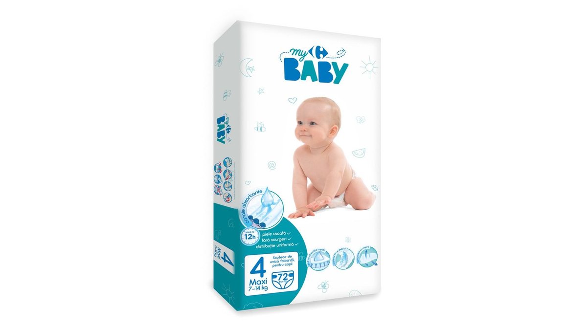Scutece Copii Maxi Nr.4, Carrefour Baby 7-14 Kg, 72 Bucati