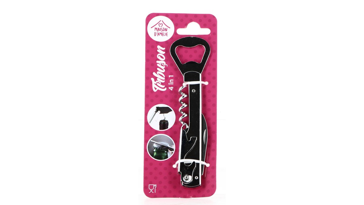 Tirbuson 4 in 1 Maison D'Amelie, inox/crom, 14x3.6 cm, Argintiu