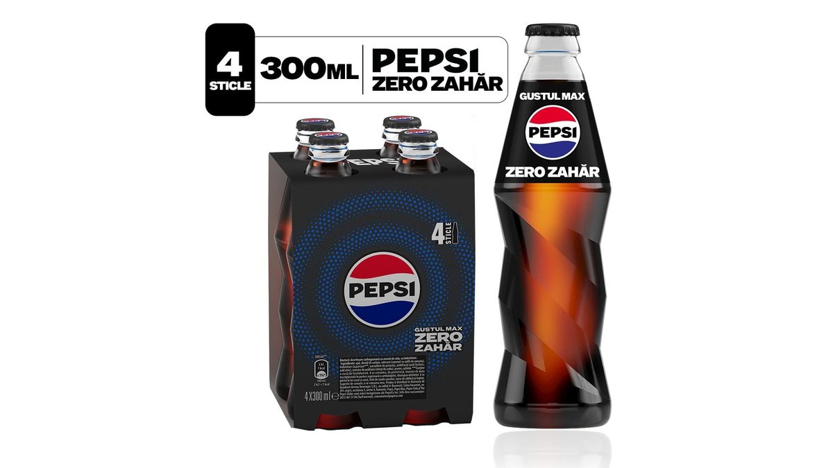 Pepsi Zero Zahar, Bautura Cola, Sticla, 4x300ML