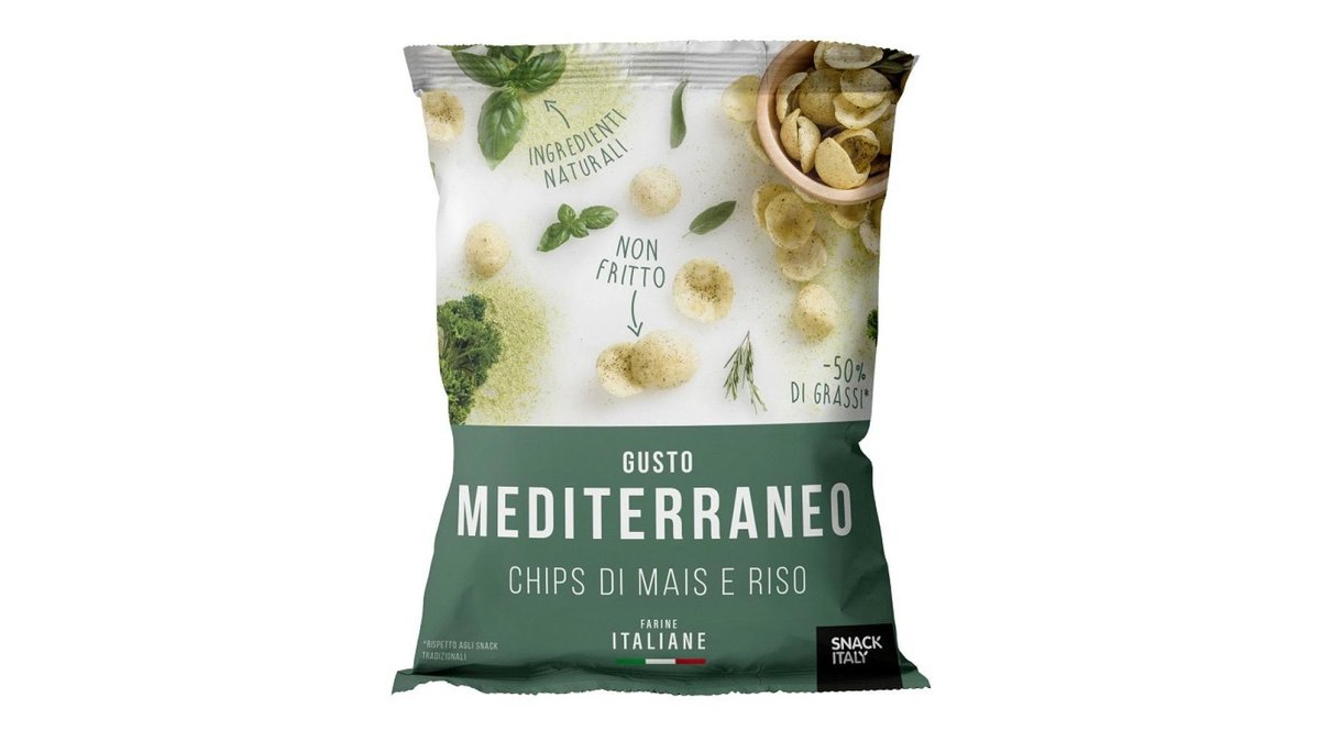 SNACK ITALY, Chips de porumb si orez cu aroma de ierburi mediteraneene, 70g