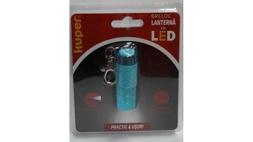 Minilanterna breloc Kuper, 3 LED-uri, buton pornit/oprit, baterii 3xLR44, Albastru