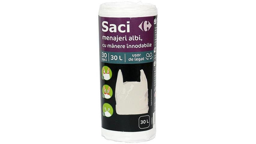 Saci Carrefour Alb Cu Manere 30L 30Buc