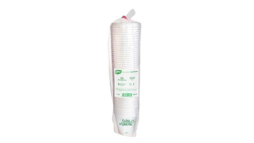 Set 25 pahare carton Biodeck, 240 ML, Alb