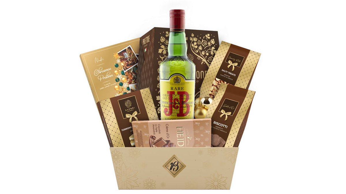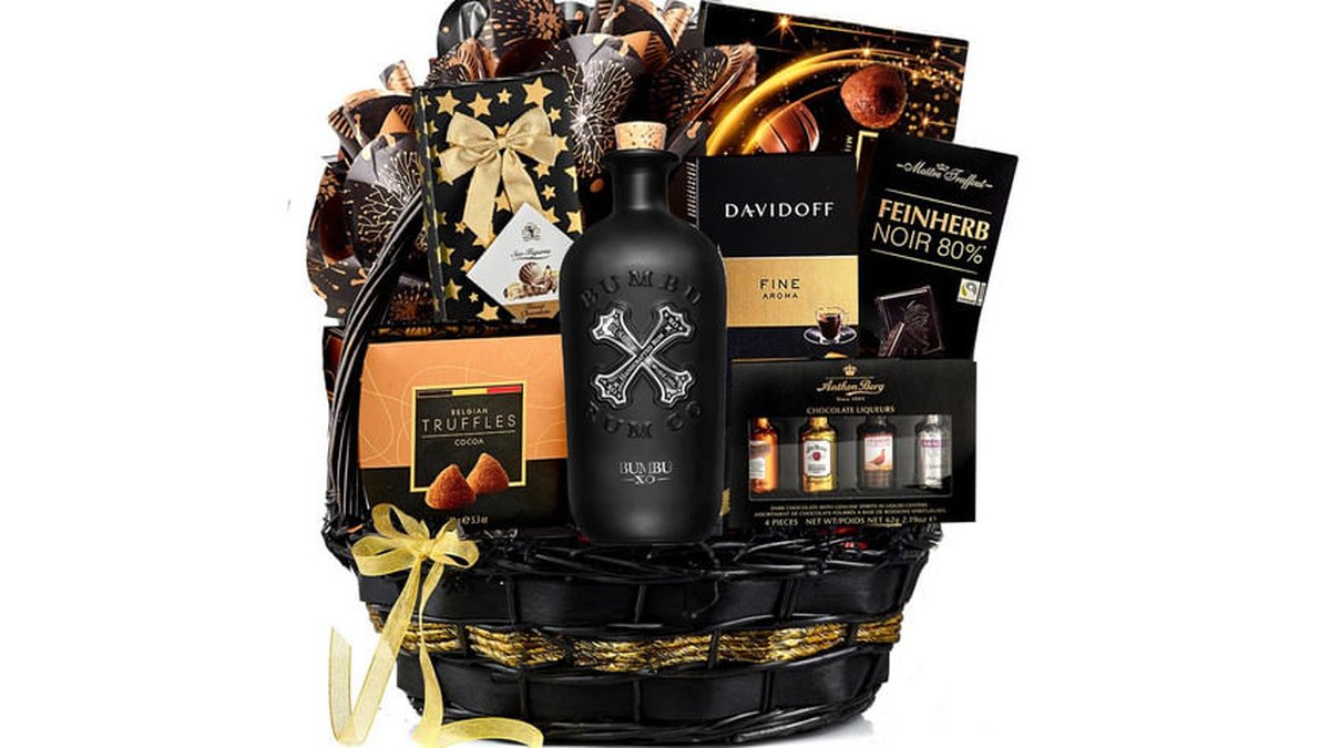 Cos pentru cadou Bumbu Experience, Bumbu XO, panettone, cafea Davidoff si dulciuri