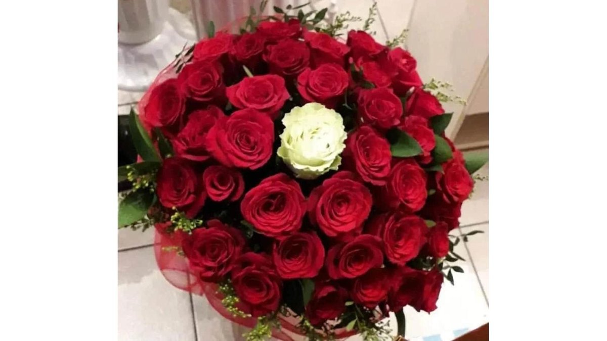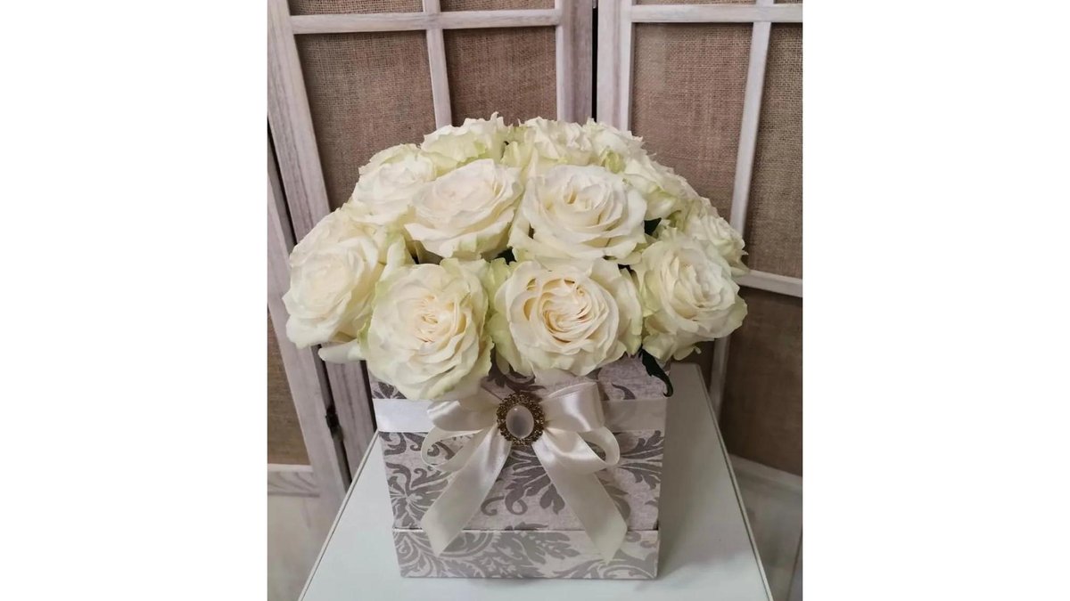 Aranjament floral cu 17 trandafiri albi