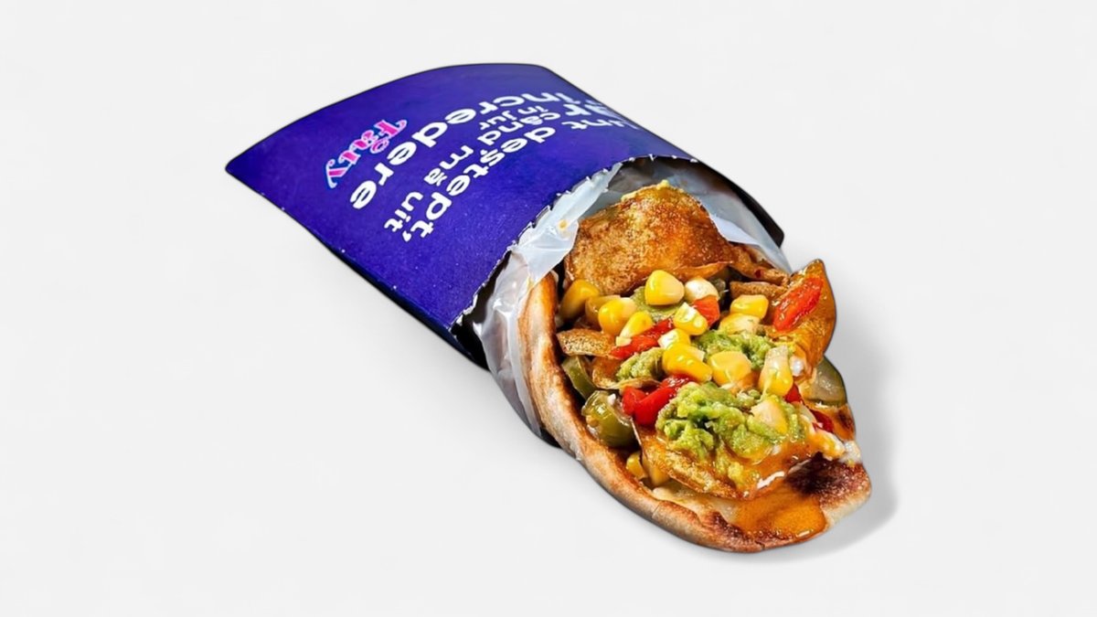 Faty, mai buna ca shaworma: lipie facuta in casa, avocado, mozzarella, chips cartofi, ardei copt, jalapeno, pătrunjel cu usturoi, ceapă verde, maioneză picantă, sos usturoi. 350 g