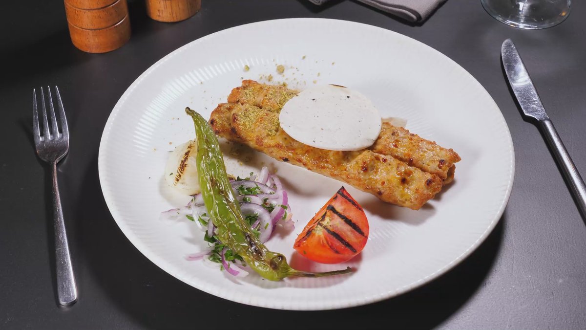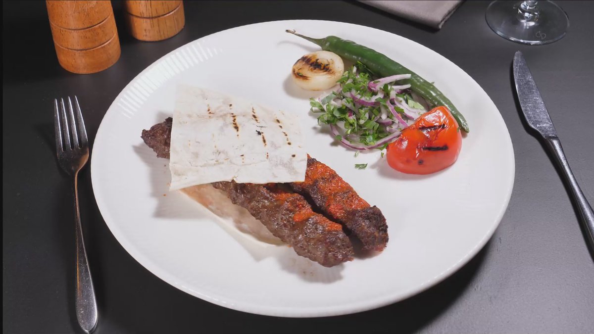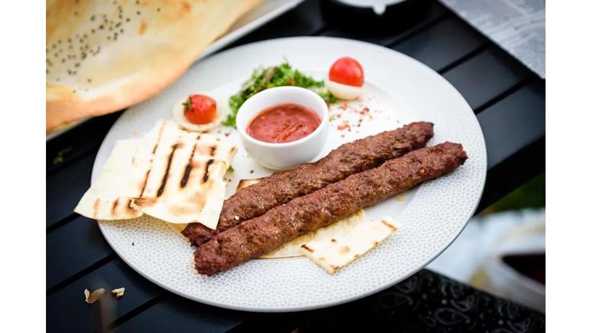 Kebab de vită, hummus, salată arabească, cartofi prăjiți 200 /200 g