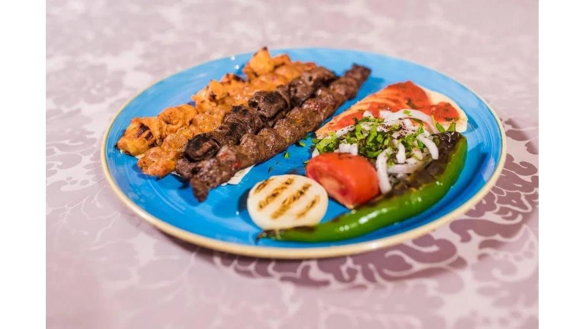 Frigărui de vită, frigărui de pui, kebab de vită, hummus, salată arabească, cartofi prăjiți 300 /200 g
