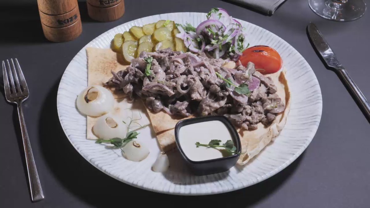 Pastă de năut, sos tahina, carne de vită, lămâie, ulei de măsline, 50/150 g