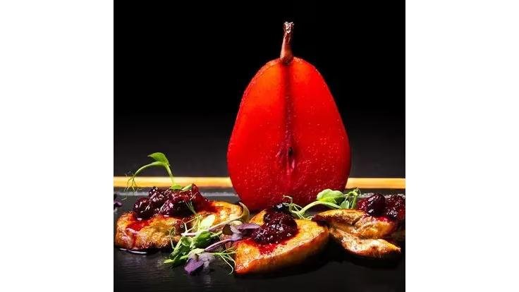 Ficat de gâscă, pere, unt, vin, sos din fructe de pădure 150/150 g