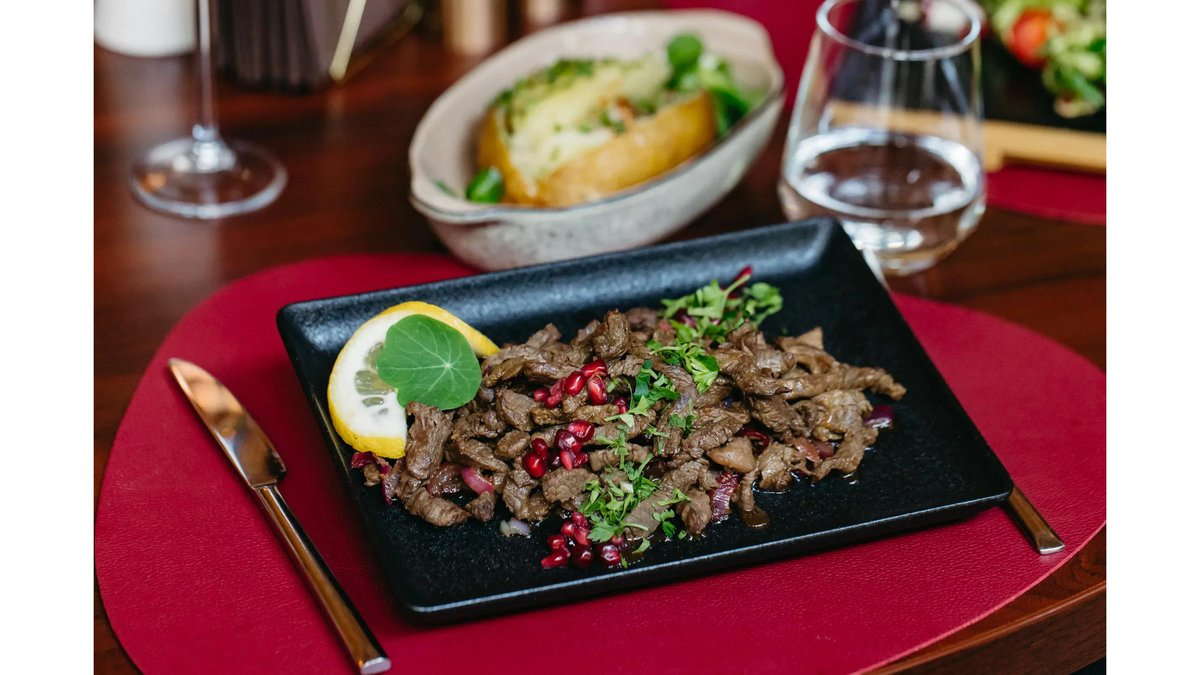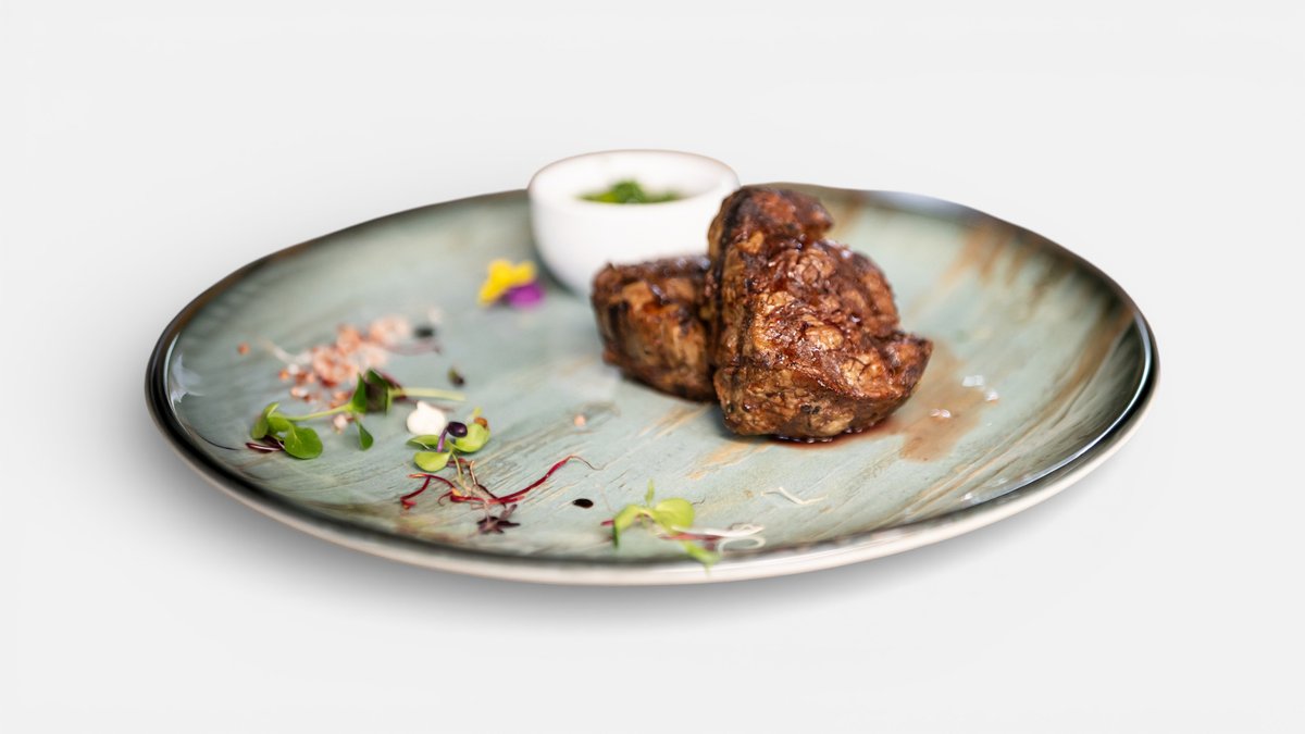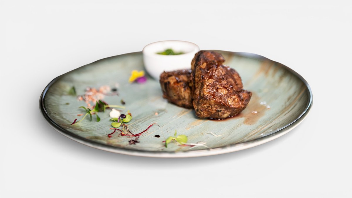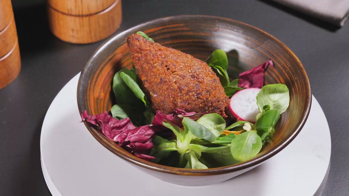 Mușchi de vită crud, condimente, grâu, mentă, busuioc, 120 g