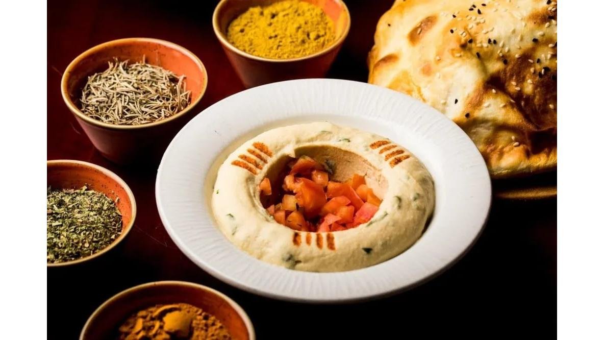 Pastă de năut, sos tahina, lămâie, pătrunjel, roșii, ulei de măsline, 150 g
