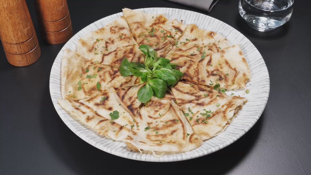 Piept de pui, cașcaval, ceapă, ardei, măsline, pătrunjel, roșii, lipie, 80/120 g