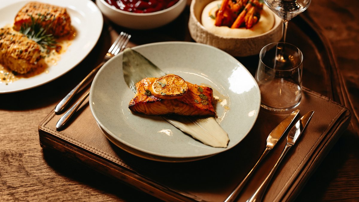 Piept de rață cu piure de țelină și dulceață de roșii cherry