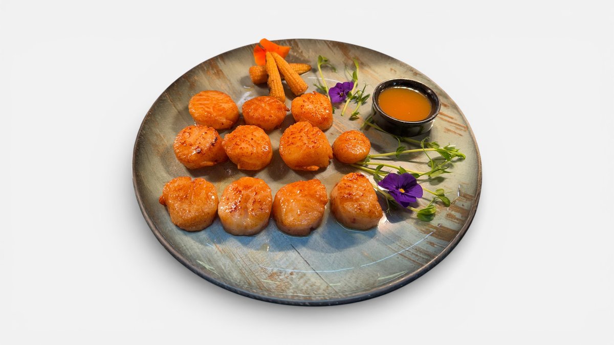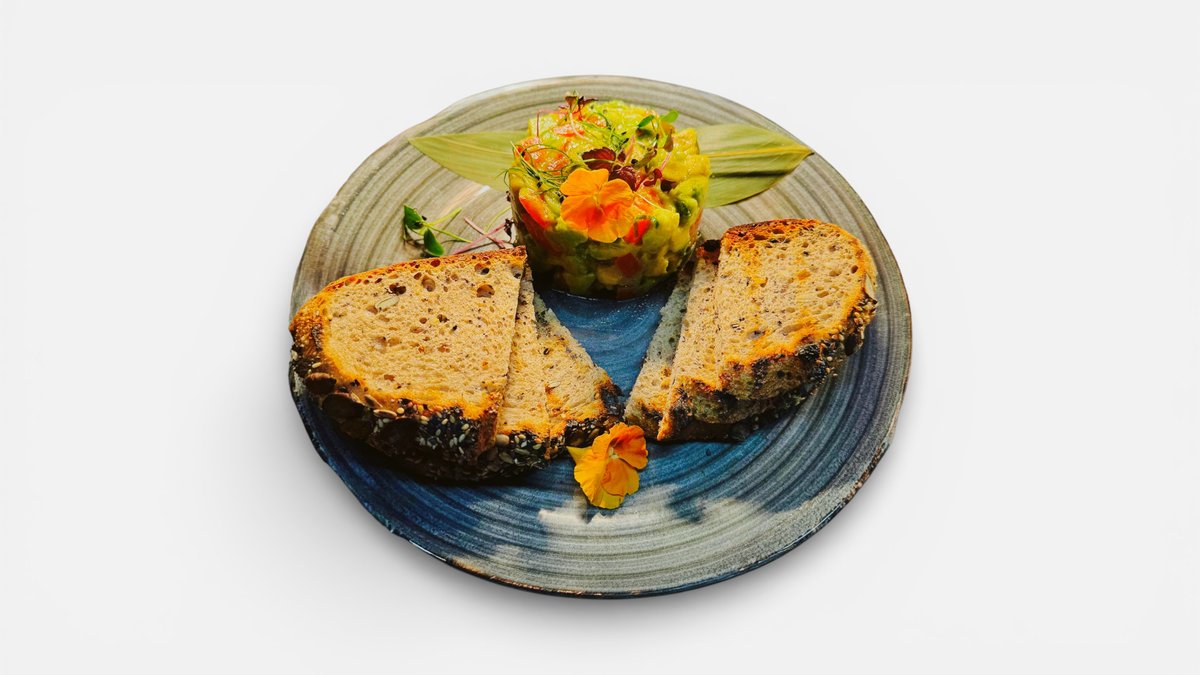 Miez de nucă, pastă de ardei iute, crutoane pisate, ulei de măsline, sos de rodii, 150 g