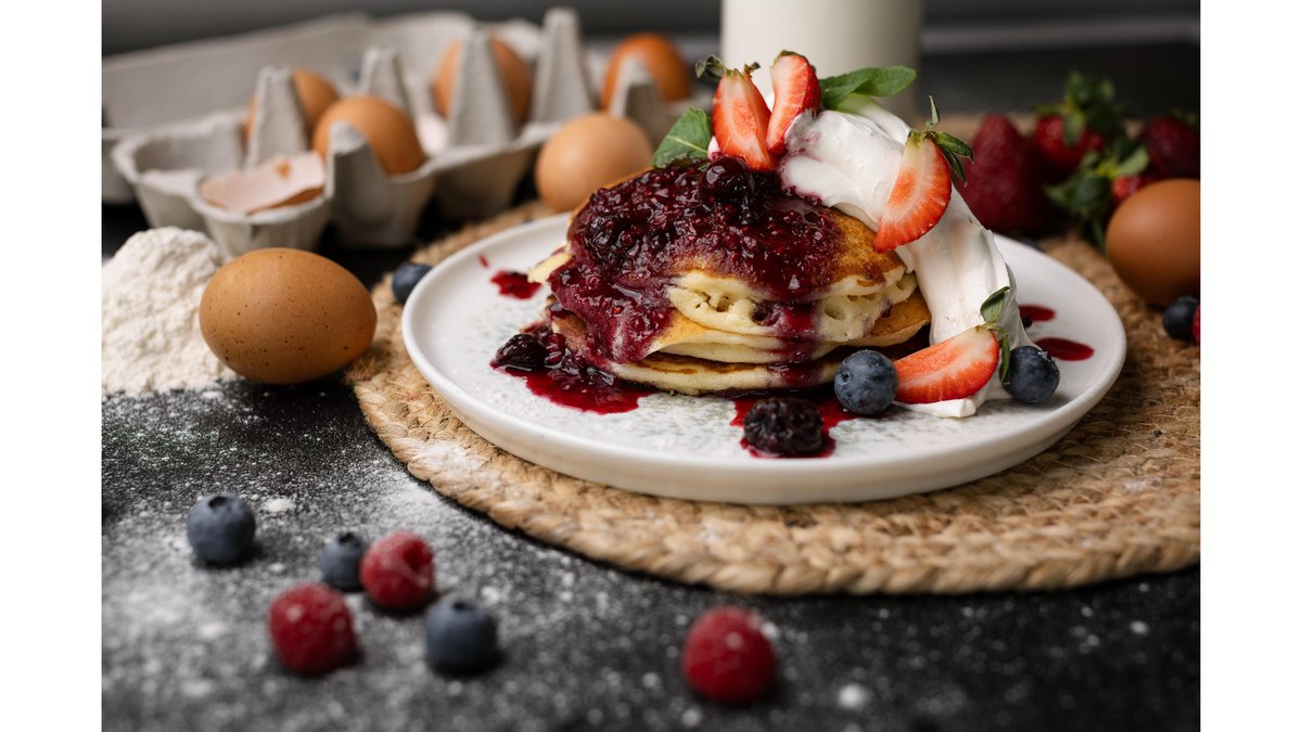 American pancakes cu cremă de brânză și sos de fructe de pădure