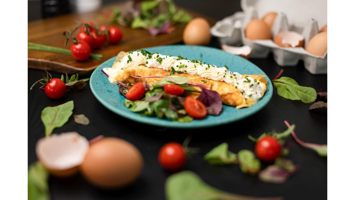 Omletă cu cremă de branză cu chivas cu microsalată de frunze colorate