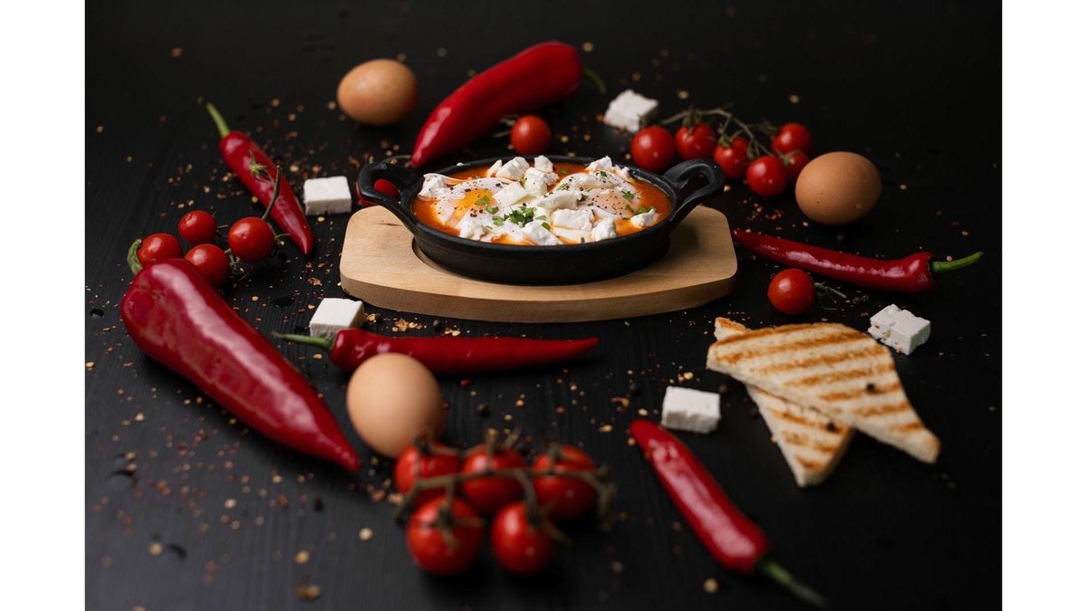 Shakshuka cu brânză feta și ouă poșate
