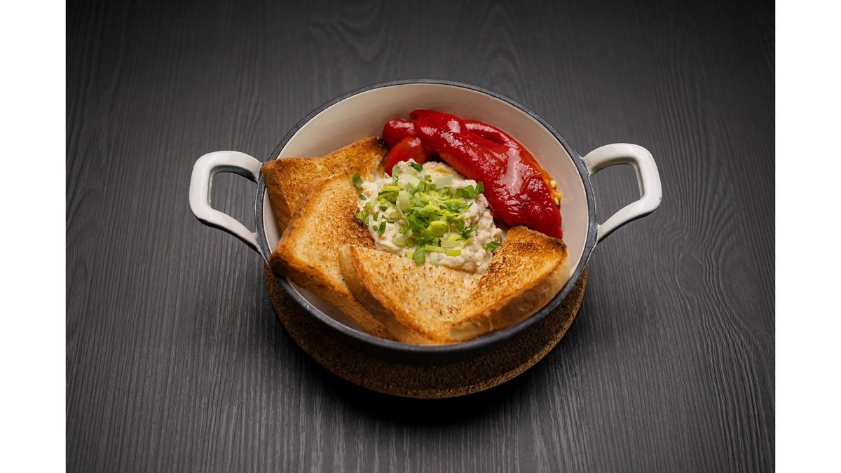 Găigană din două ouă, bacon crocant, telemea, roșii proaspete și pâine toast. Conține produs din produs congelat.