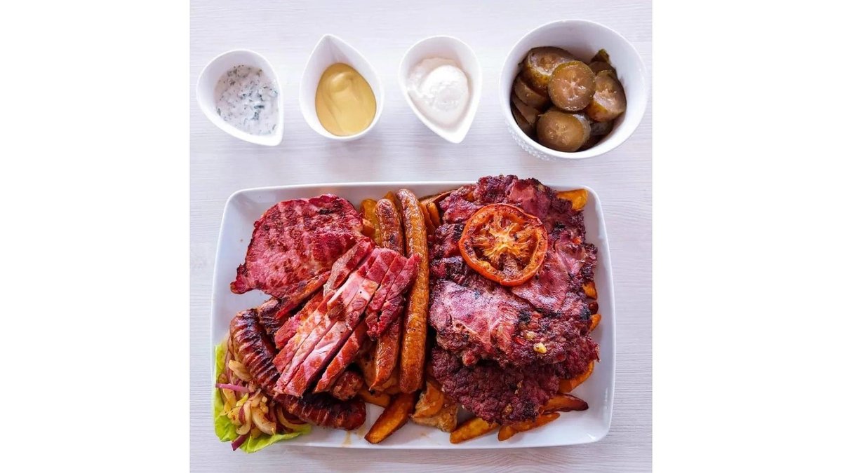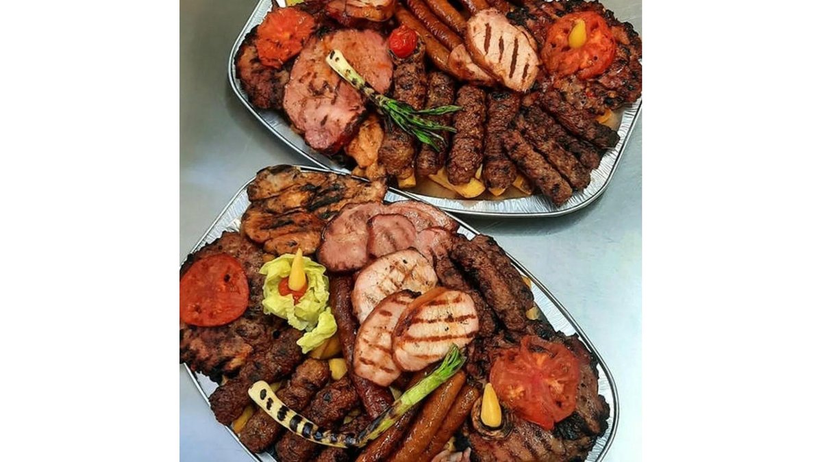 Pljeskavica Plus, mici sârbești, mici de Bulbucan, mici Ardeleanca, cârnați de casă, virșli, ceafă de porc, ceafă afumată, pulpă de pui, cartofi prăjiți, muștar, kajmak, urnebes, sos hrean, salată 3000g