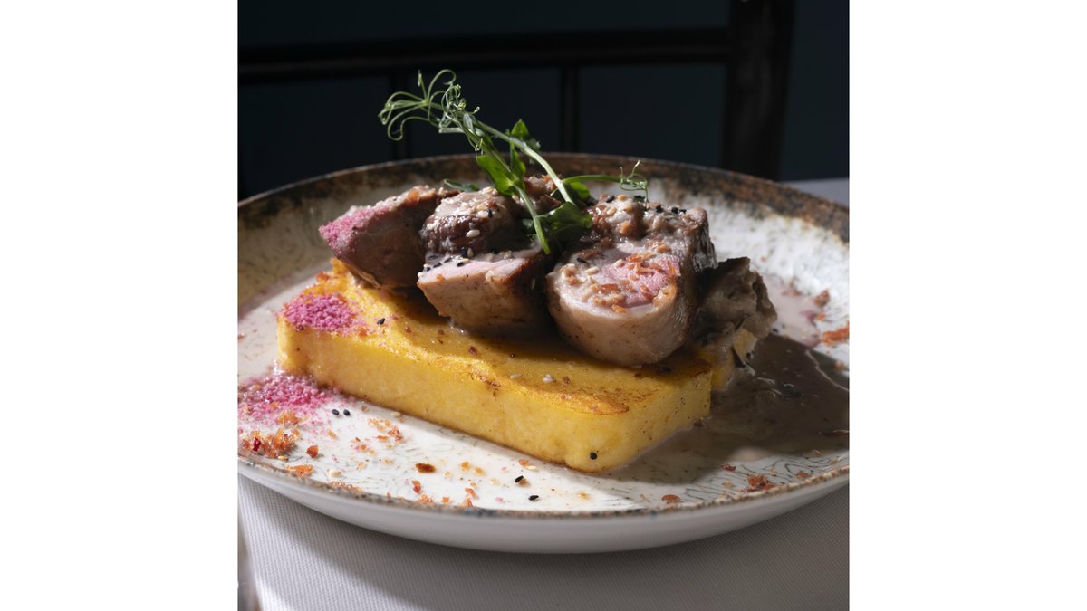 Mușchi de porc cu cremă de mămăligă, sos de hribi cu usturoi și mărar – 500 gr