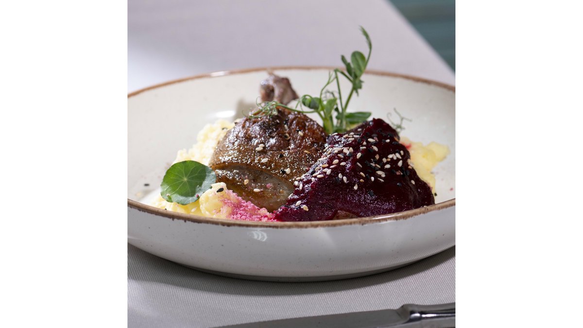 Pulpă de rață cu piure de cartofi și dulceață de sfeclă cu hrean – 400 gr