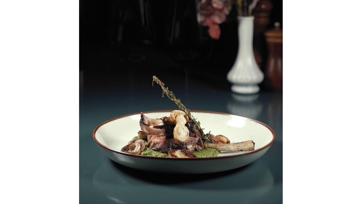 Cotlet de miel cu spanac, salată de sfeclă cu hrean și hribi cu usturoi – 550 gr