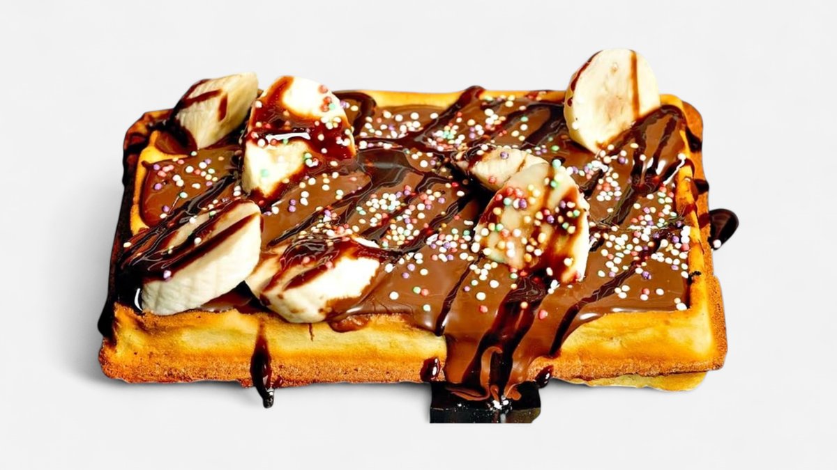 Waffa, crema de ciocolata, banana, topping de ciocolata, bombonele colorate 250 gr