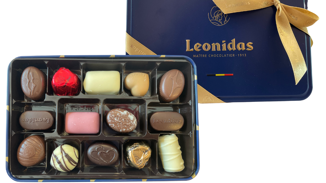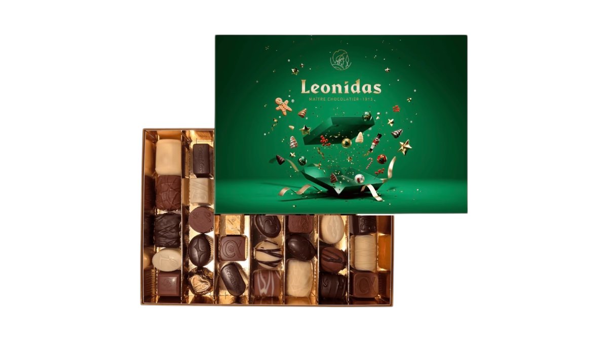 Oferă un cadou deosebit cu cutia de Crăciun Leonidas! 16 praline belgiene de lux, ambalate festiv, gata să aducă un strop de magie de sărbători.