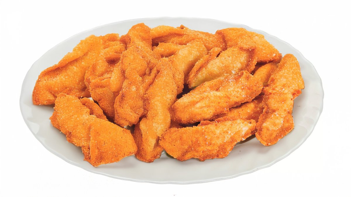 14 strips de pui, porție dubla de cartofi pai,2 portii salata varza, 2 sos - la alegere 970 g