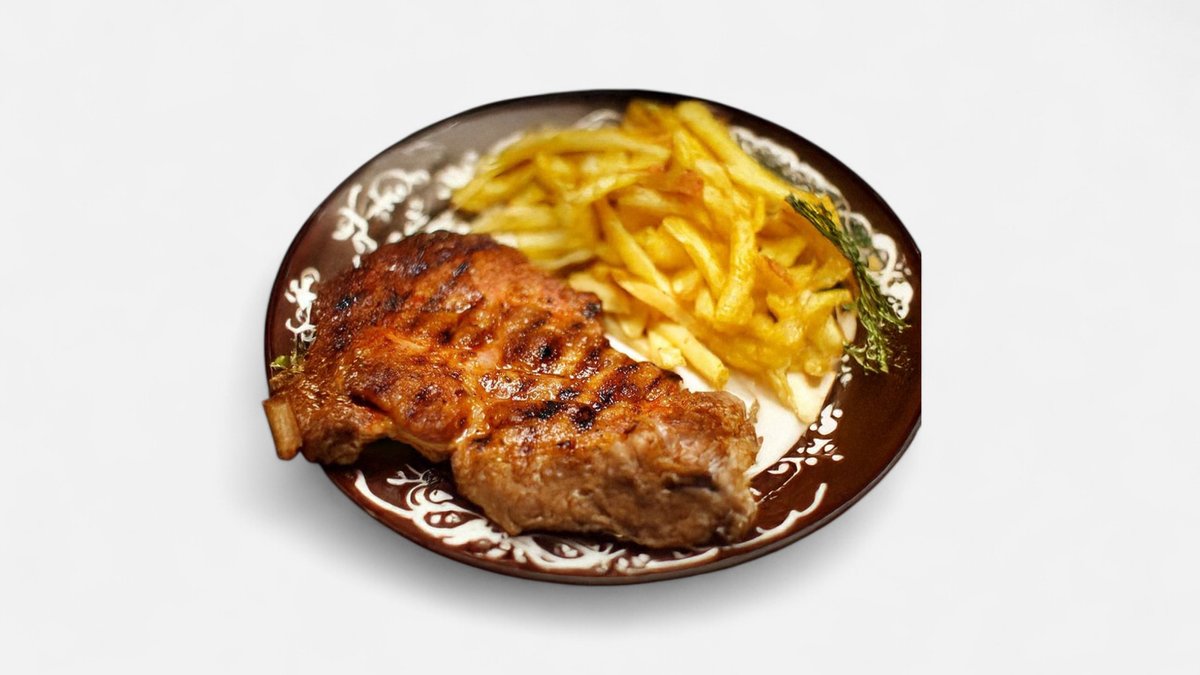 Șnițel porc+Cartofi la cuptor+Sos marar