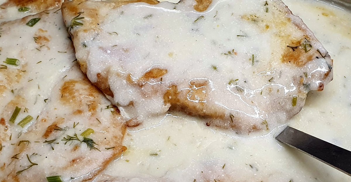 Șnițel de porc, cartofi la cuptor, sos marar 480 g