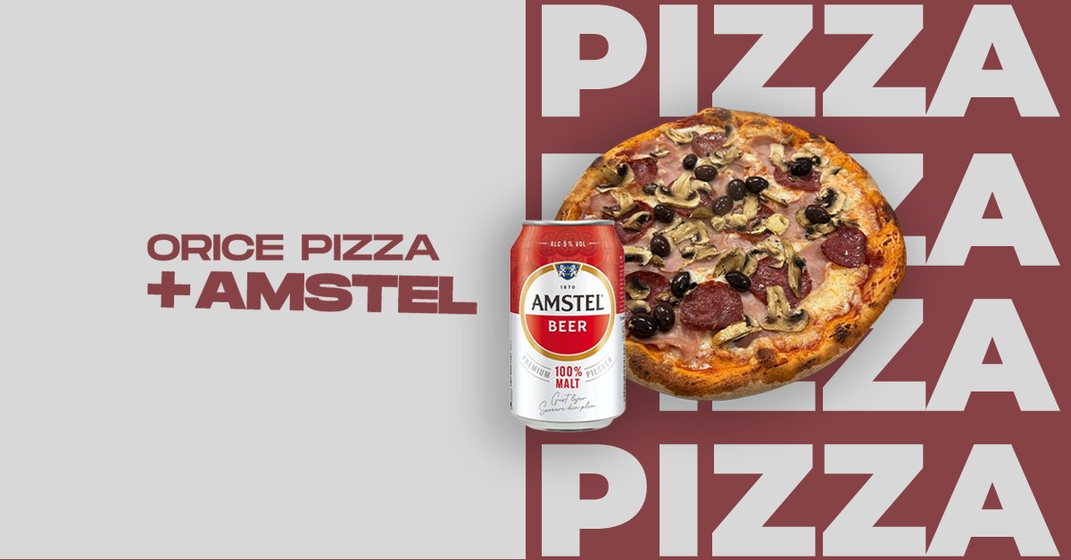Pizza + Bere Amstel din partea casei 🍕🍺