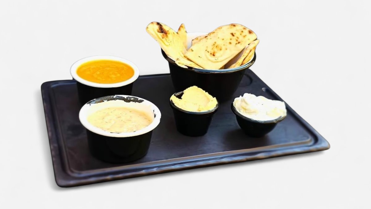 hummus, salata de vinete, crema de branza cu boia si susan, tzatziki, pita. 400g