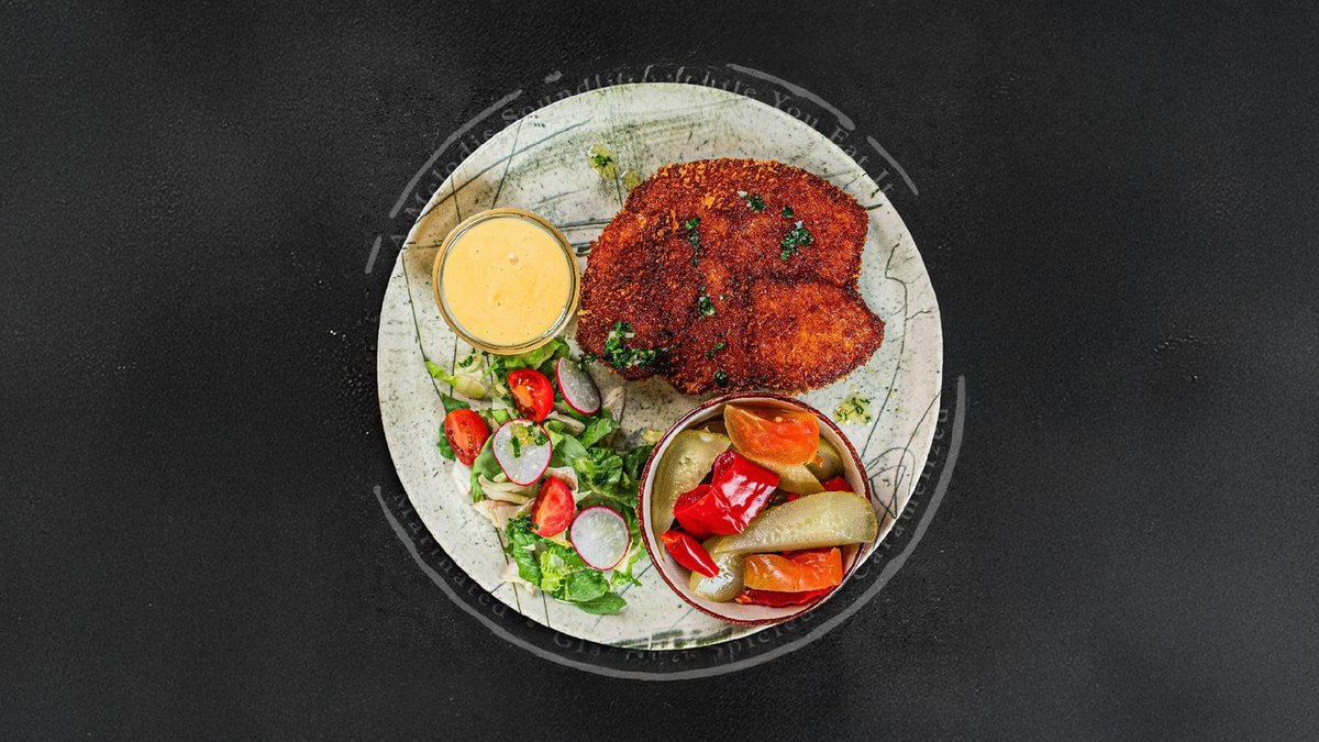 *snitel de curcan, sos de branza, salata de muraturi. 300g