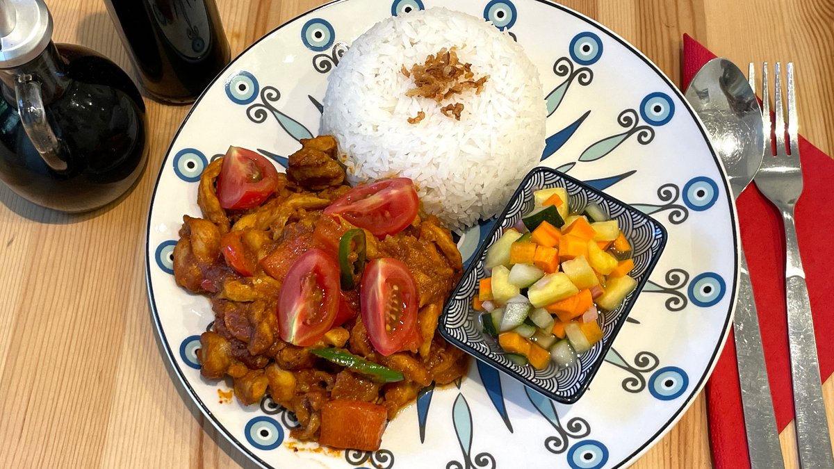 Tocană de pui Tongseng, cu orez și legume proaspete – Tongseng ayam 🌶🌶🌶