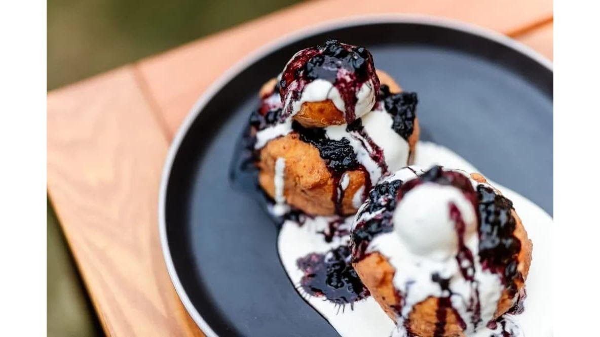 Papanasi cu gem de afine si sos de vanilie