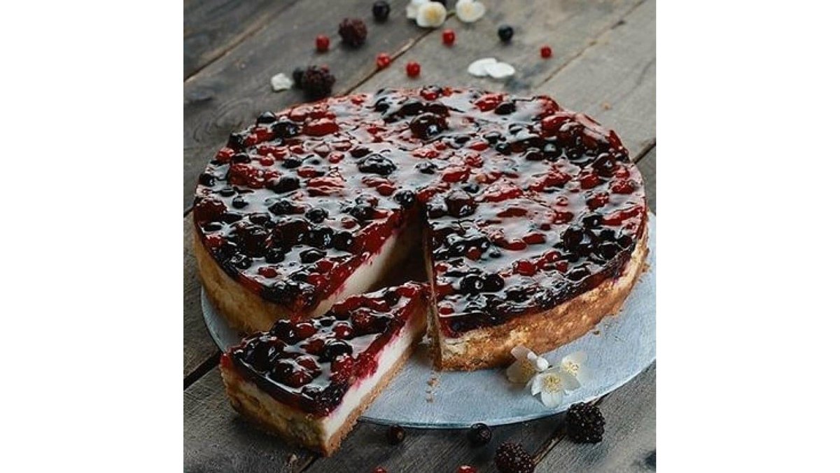 Biscuiți cu lapte, fructe de pădure, cremă de brânză, cremă vegetală, mascarpone, zahăr, ou, unt 150 g