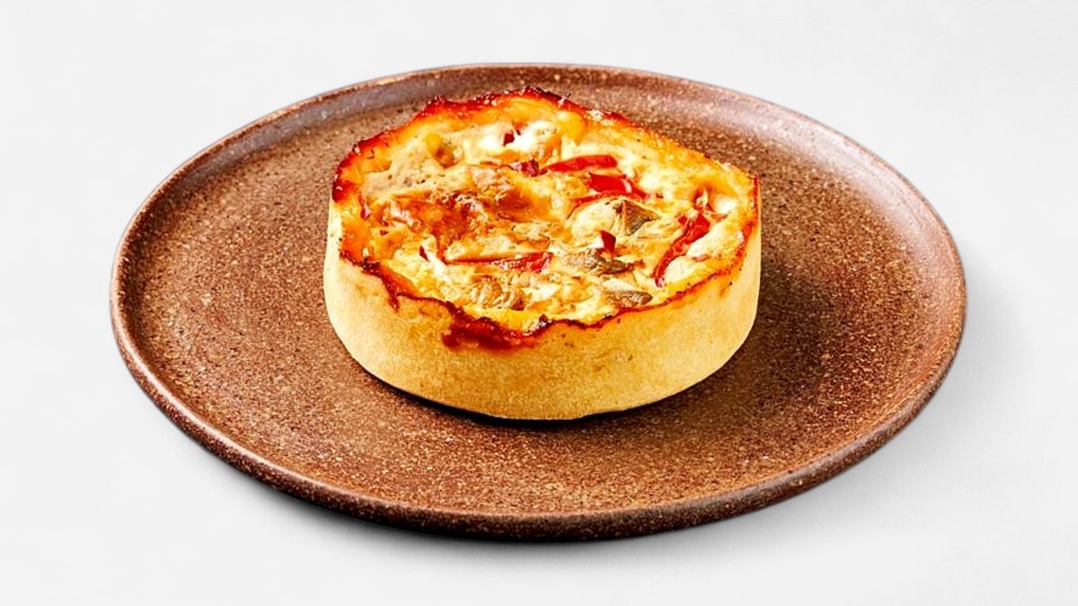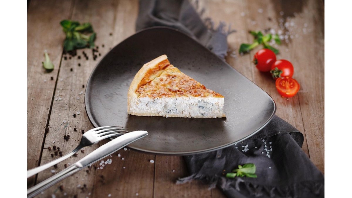 Tartă fragedă din aluat de grâu, umplută cu pulpe de pui fără piele, ciuperci champignon, ardei capia și un amestec cremos de smântână, ouă și brânzeturi fine – brânză cu mucegai albastru și cașcaval clasic. Valori nutriționale medii pentru 100 g: Valoare energetică: 1054.47 Kj/ 252.02 Kcal, grăsimi: 19.49 g, acizi grași saturați:9.87 g, glucide: 10.36 g, zaharuri: 1.35 g, proteine: 8.5 g, sare: 0.69 g