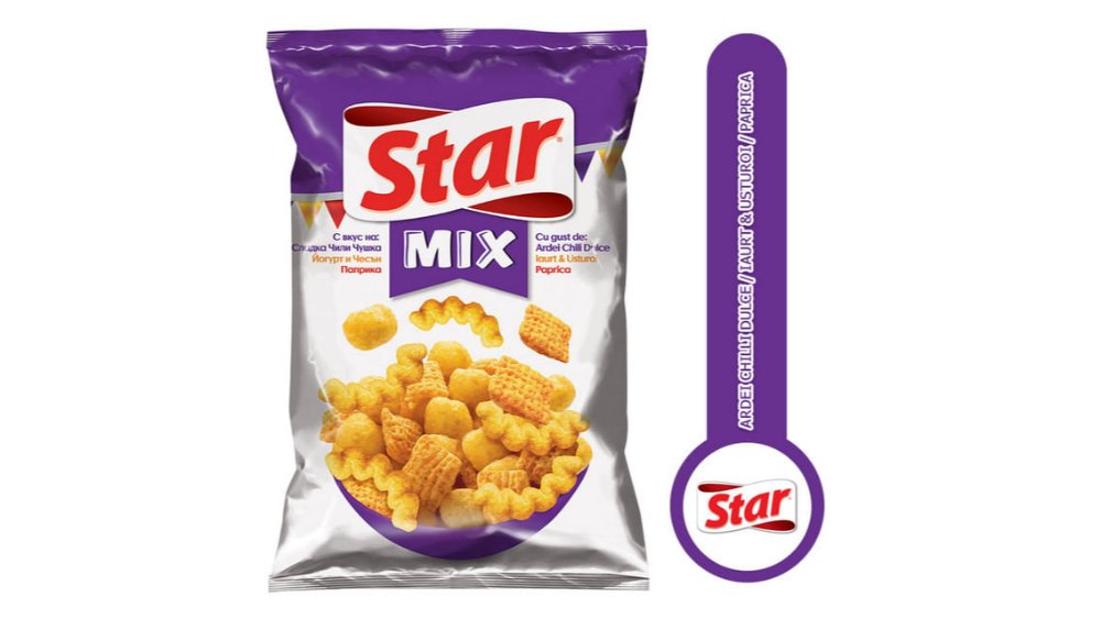 Snacks Star mix mov cu gust de de ardei chilli dulce, iaurt, usturoi si paprika, 90 g