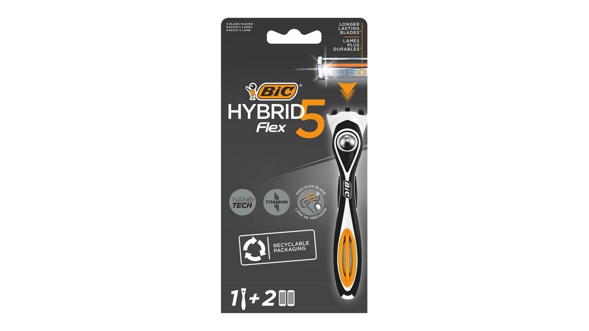 Aparat de ras reincarcabil hibrid pentru barbati BIC Flex5, cu 5 lame ultra-subtiri.