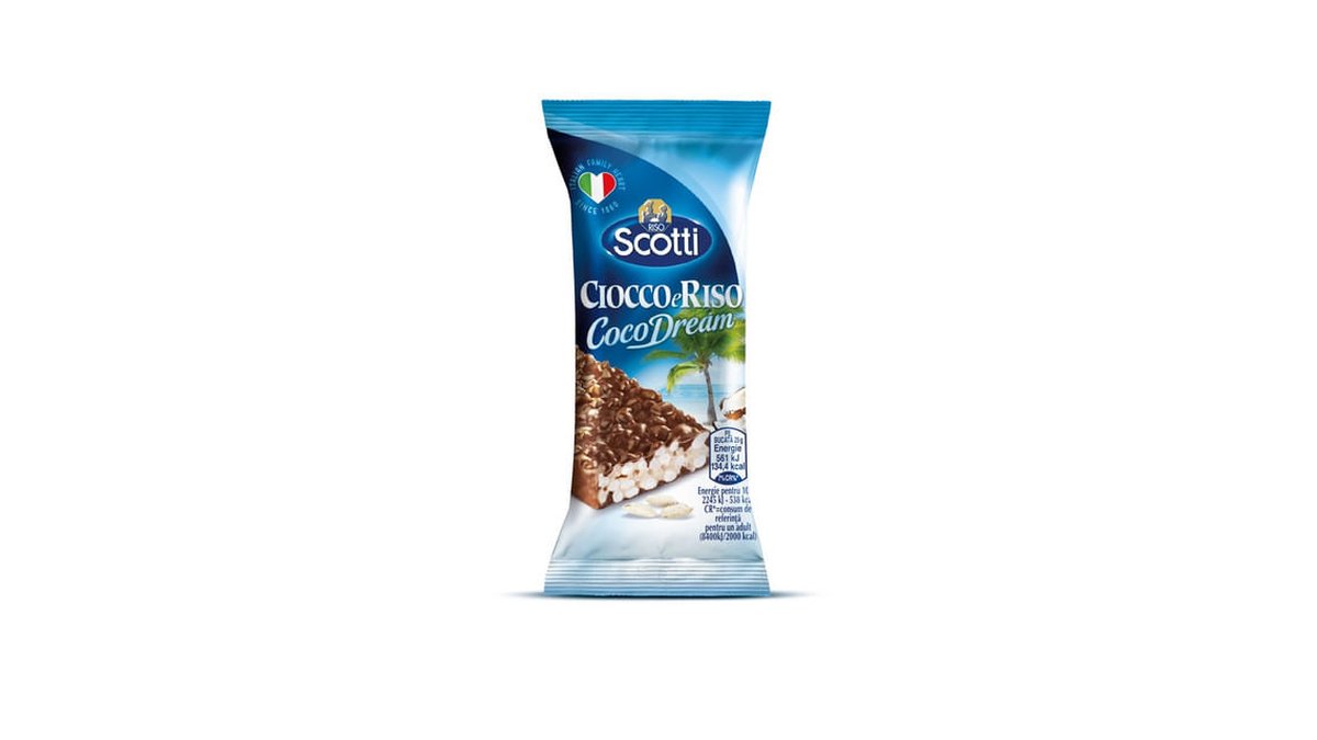 Baton cu orez, ciocolata si cocos Riso Scotti Snack Cocodream, 25 g