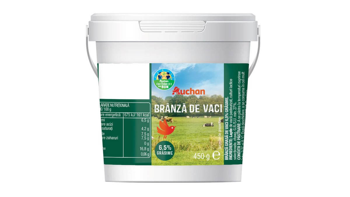 Branza de vaci Auchan, 6.5% grasime, 450 g