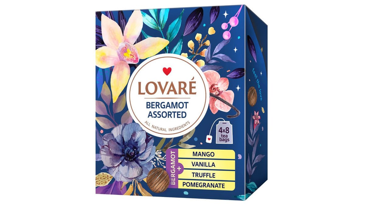 Colectie de ceai negru asortat cu bergamota Lovare Bergamot Assorted, 32 pliculete